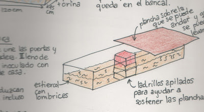 Mi idea es que la zanja esté divida en tres o cuatro zonas con ladrillos, pero dejando los agujeros de los ladrillos orientados de forma que las lombrices puedan migrar de una zona a otra. Los ladrillos también servirán para dar estabilidad al camino. Pero además puedo llenar una zona de la zanja con estiércol y paja, que liberarán calor y CO2 al invernadero y las lombrices (que no soportan temperaturas tan altas) podrán migrar a zonas más descompuestas (y por tanto más templadas). Cuando el estiércol y la paja hayan terminado su proceso de descomposición, las lombrices migrarán a esa zona en busca de nutrientes y yo podré cosechar las zonas donde han estado anteriormente. Al menos esa es la teoría, a ver cómo me va. También espero que parte de la fertilidad creada por la zanja pase al suelo general del invernadero por sí misma.