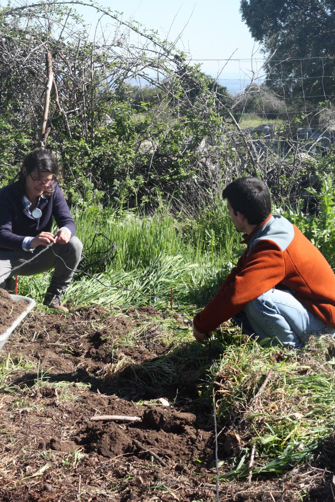 Después, Mavi Arroyo me comentó que en su huerto las plantas suelen semillarse en los caminos, porque «como los caminos están más bajos que los bancales, *y el agua va hacia abajo* arrastra las semillas ahí».