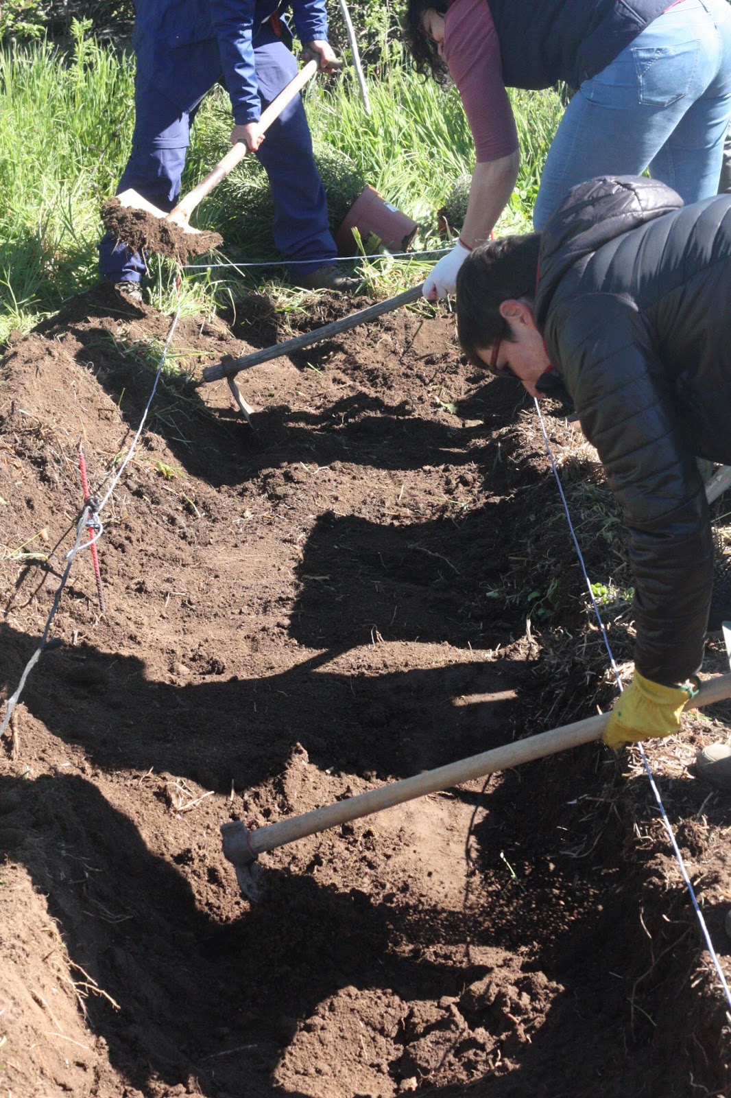 El problema, claro, es que para hacer un bancal hundido *hay que cavar*, cosa que procuro evitar en la medida de lo posible. ¿La solución? Convocar un curso de permacultura y conseguir que la gente *pague por cavarte los bancales*. Lo sé, soy un genio.