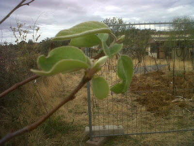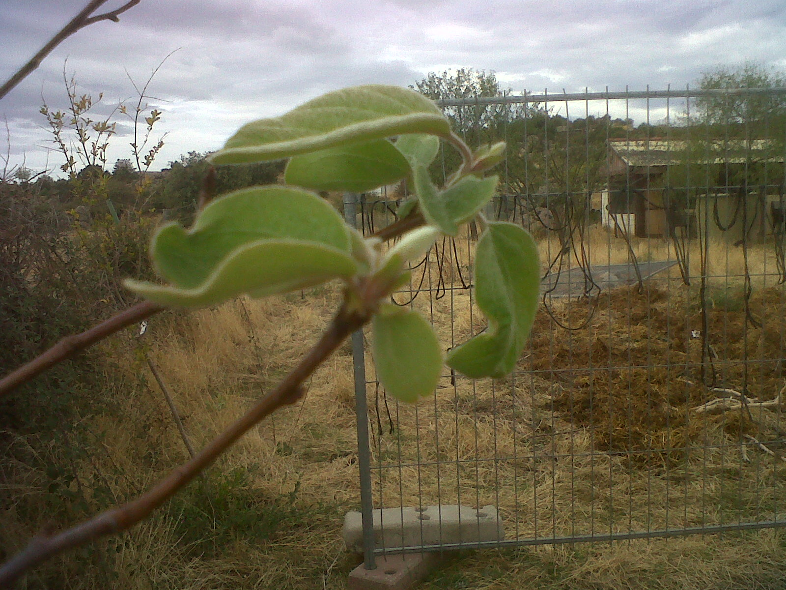 El membrillero también está agradeciendo la lluvia y la bajada de temperaturas. Y lo está celebrando sacando hojas nuevas.