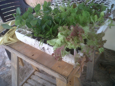 Armada con la euforia de este exitazo, me dispuse a plantar un huertecito de invierno en la terraza. Tuve que mendigar plantón, porque nada de lo que semillé en verano salió, a pesar de haber puesto las bandejas a flotar en la piscina para que tuvieran siempre agua.