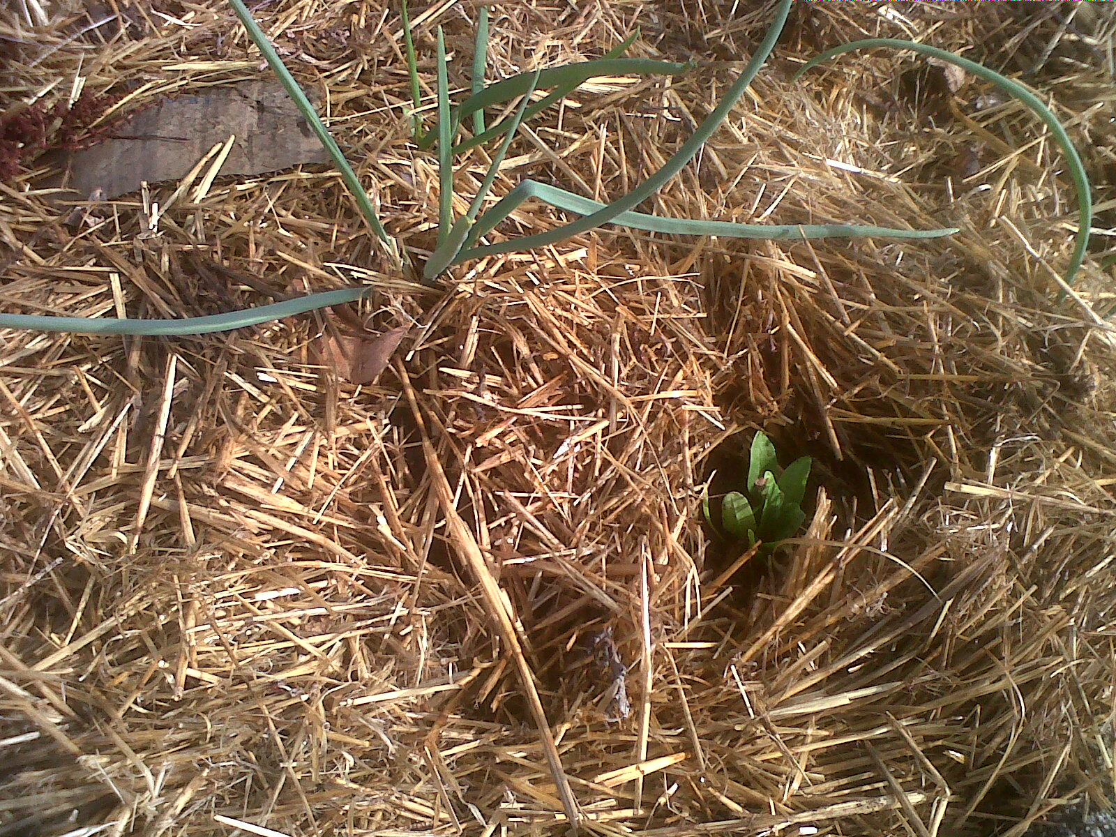 Más espinaca al lado de cebollas espontáneas.