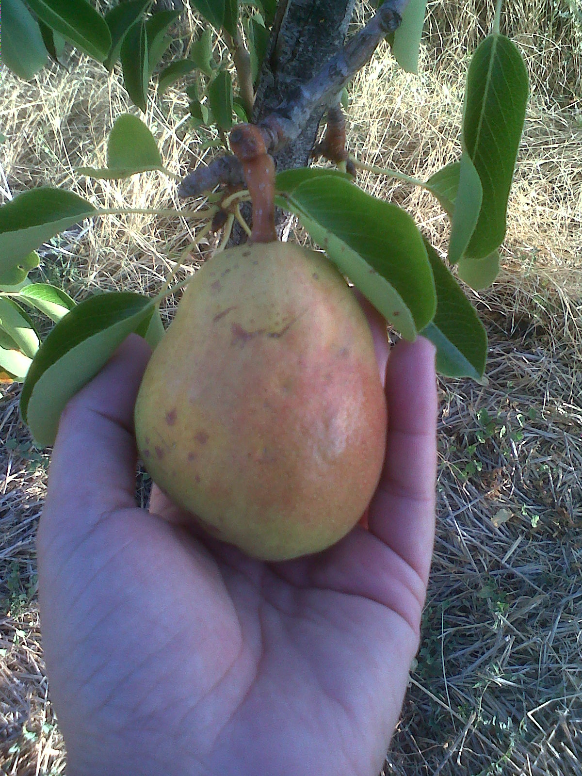 Las ramas rotas y todo destrozado. Con lo contenta que estaba yo con la rama nueva del peral, que le había puesto un peso para que creciera horizontal y todo.