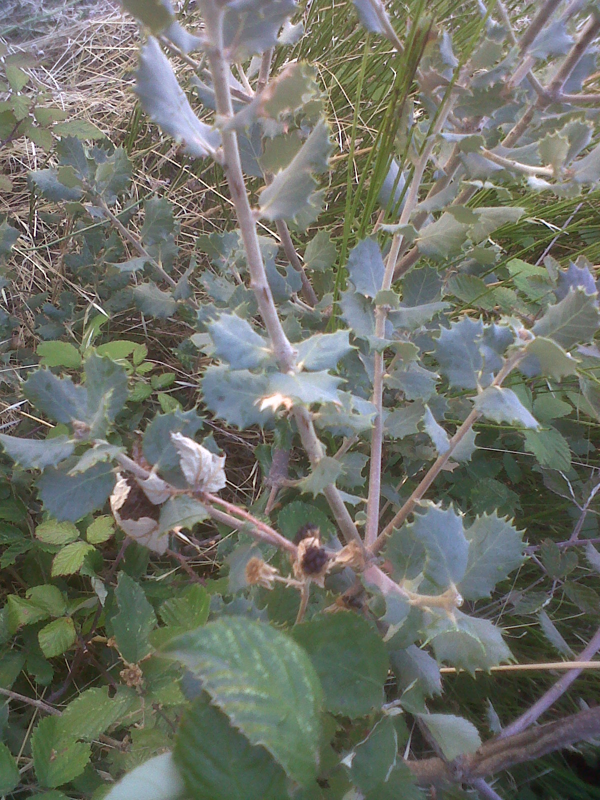 El trabajo en el invernadero va lento, pero seguro. En la masa de zarzas que hay a la derecha de la estructura, ha tenido la mala suerte de salir una encina. Digo mala suerte porque nadie en su sano juicio permite que crezca un árbol de hoja perenne al sur de su invernadero, y menos aún si tiene las hojas pinchudas, todas deseosas de rasgar el plástico. Así que la encina sufrió un encuentro mortal con las tijeras de podar.