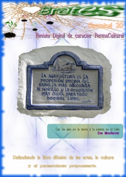 En este germinal 20 os encontraréis con articulos como «Eso no se dice, eso no se hace, eso no se toca» de Janeth Ivimas (ProCrianza de Apego) «El quemado de las puntas de las hojas de las lechugas» de Pablo José y su estupendo proyecto de huerto urbano, «Como creaun un buen suelo reciclando» del portal que colabora con Brotes (RedPermacultura) «Polución Cero» del permacultor argentino Antonio Urdiales, ademas de las secciones habituales de nuestros amigos Los Tremendos Permacultores del Norte y sus cantigas de la Permacultura, la visualización artistica de los componentes de TalentArt, las Poesias para Vivir del colectivo La Palabra Itinerante, relatos, musica y libros en creative commons, el recetario de DefensaAnimal…