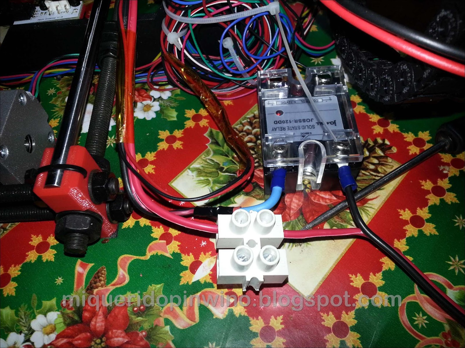 Para que funcione la alimentación al relé, yo he puenteado con dos cables de la alimentación principal a la alimentación de la cama, en la clemá verde (el relé no consume casi nada, por lo que pueden ser cables finos):